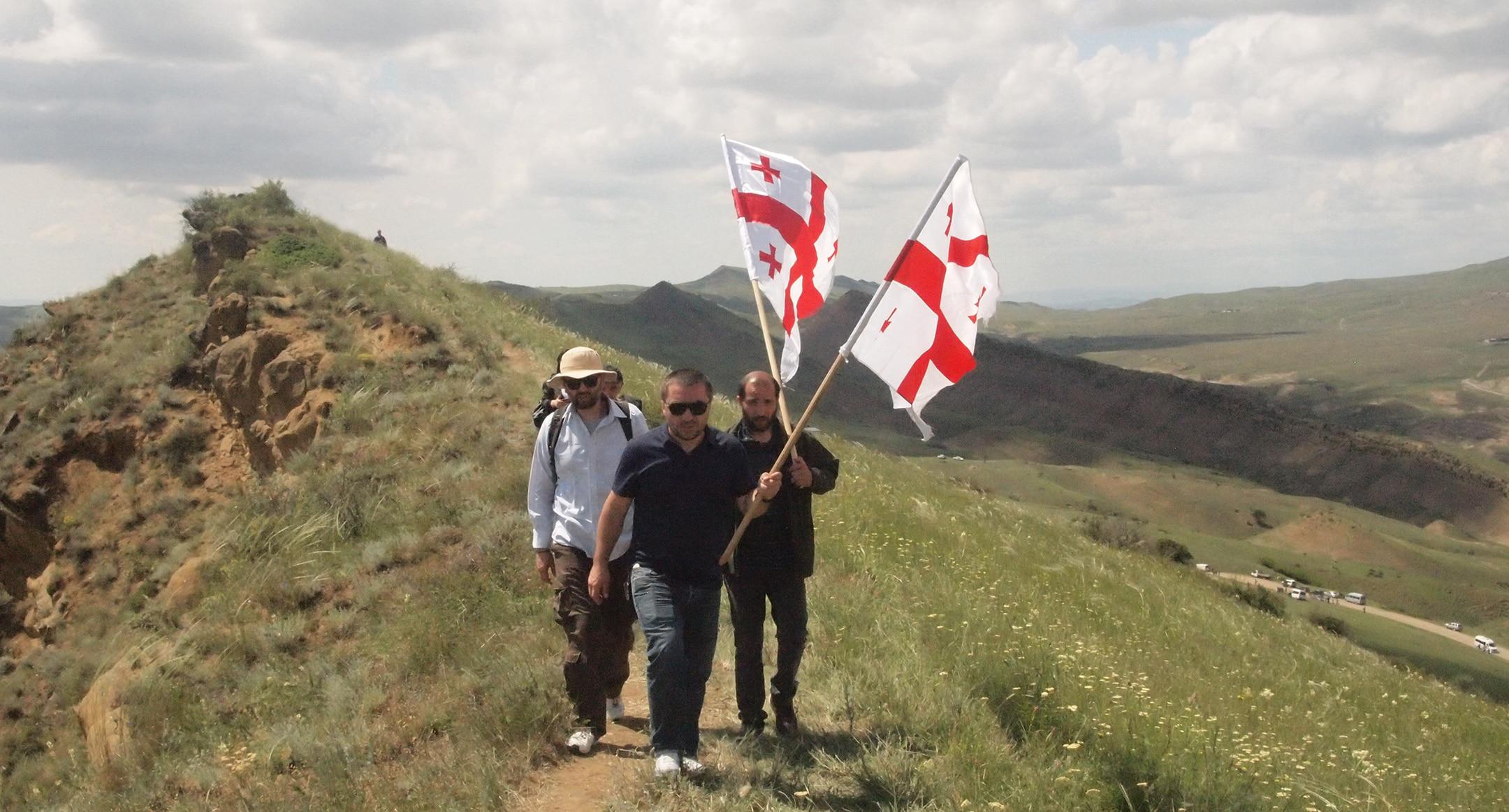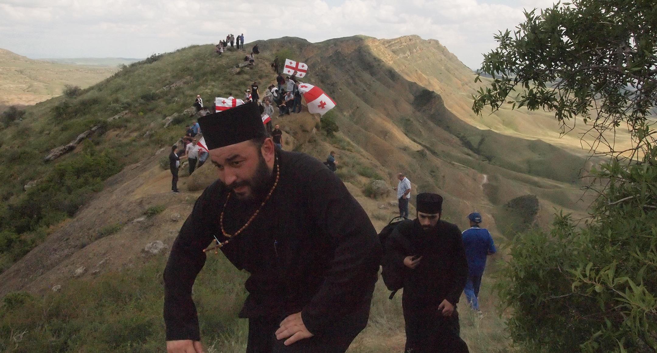Спор Грузии и Азербайджана из-за монастырского комплекса “Давид Гареджи” перешел в формат обмена акциями. В ответ на идею азербайджанских активистов провести автопробег на территории комплекса 28 мая 2019 года жители Грузии провели шествие с национальными флагами по горным тропам у монастырей. Грузинские активисты не исключали столкновений на границе, но пограничники следили за порядком, конфликтов удалось избежать. Участники двухкилометрового похода развернули большой флаг Грузии в сторону Азербайджана. Акция у монастырского комплекса должна стать сигналом как для Азербайджана, так и для грузинских властей, заявили участники похода. Они считают, что власти Грузии должны активнее реагировать на активность азербайджанской стороны около границы, и призвали правительство защитить интересы Грузии без ущерба для отношений с Азербайджаном. Конфликт обострился в апреле, когда у паломников и туристов возникли проблемы с доступом к монастырю Удабно. С их слов, азербайджанские пограничники несколько дней перекрывали дорогу к монастырю, хотя у Грузии и Азербайджана есть договоренность о свободном проходе людей к монастырям “Давид Гареджи” по обе стороны границы. Фоторепортаж корреспондента “Кавказского узла” Беслана Кмузова.