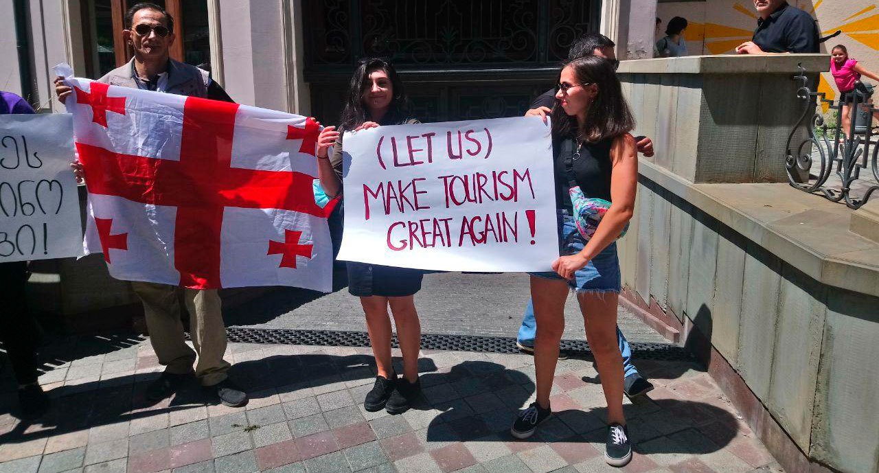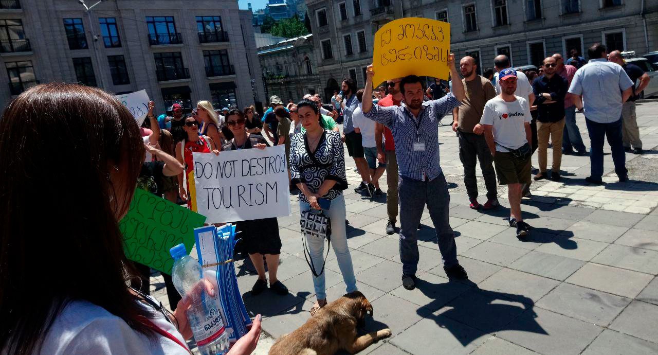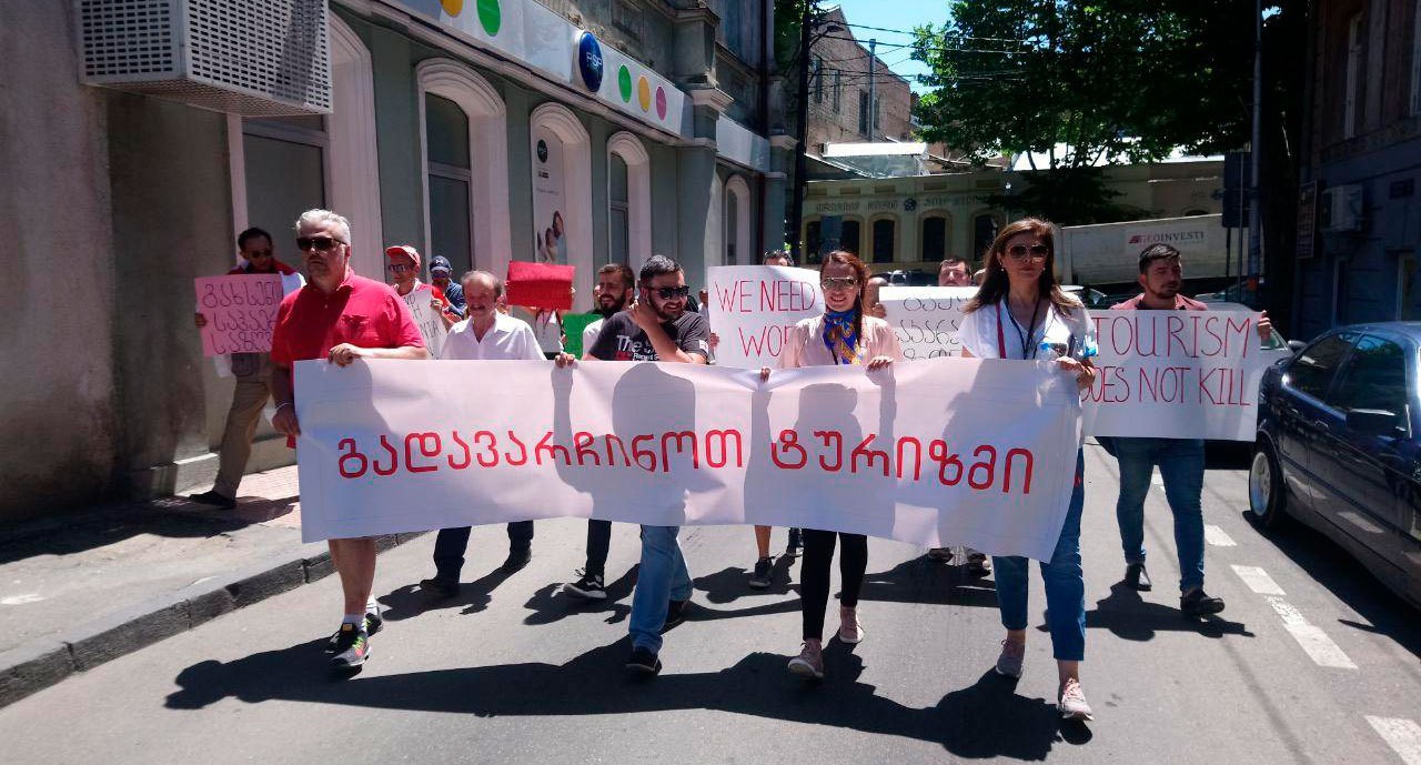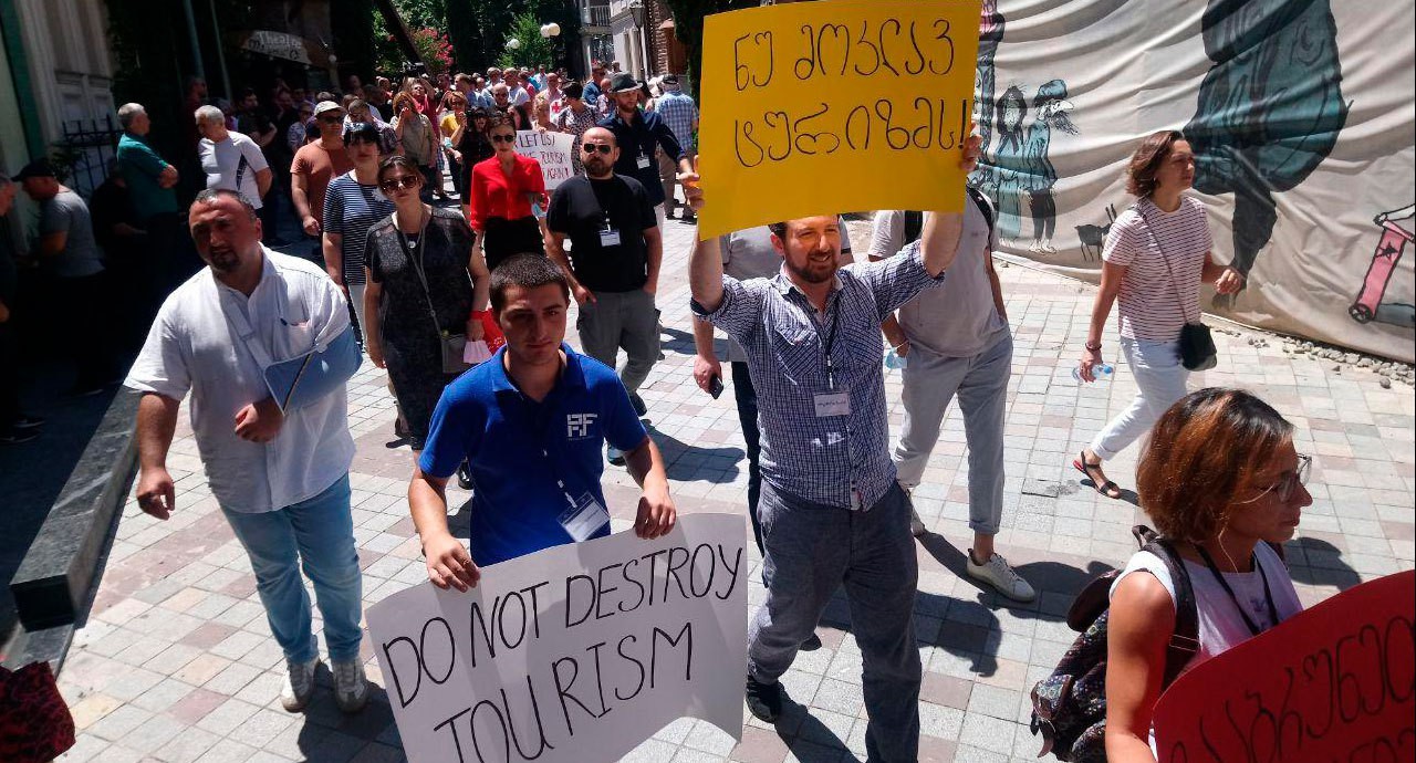 Представители туристических компаний Грузии 15 июля провели митинг в Тбилиси с требованием открыть авиасообщение со странами-источниками турпотока. Из-за ограничений по коронавирусу сфера туризма в Грузии оказалась на грани банкротства. Участники акции начали мероприятие в центре туристической части Тбилиси – на улице Иоанэ Шавтели, после чего прошли маршем к зданию Госканцелярии, где провели митинг. Туркомпании требуют, чтобы были открыты границы с теми странами, в которых ситуация с пандемией коронавируса взята под контроль, большинство из них – это страны Евросоюза. При этом о наземных границах речи пока не идет, поскольку в соседних с Грузией странах ситуация по коронавирусу очень нестабильная. Как проходила акция с участием порядка 300 представителей турбизнеса Грузии, в фоторепортаже корреспондента «Кавказского узла» Беслана Кмузова