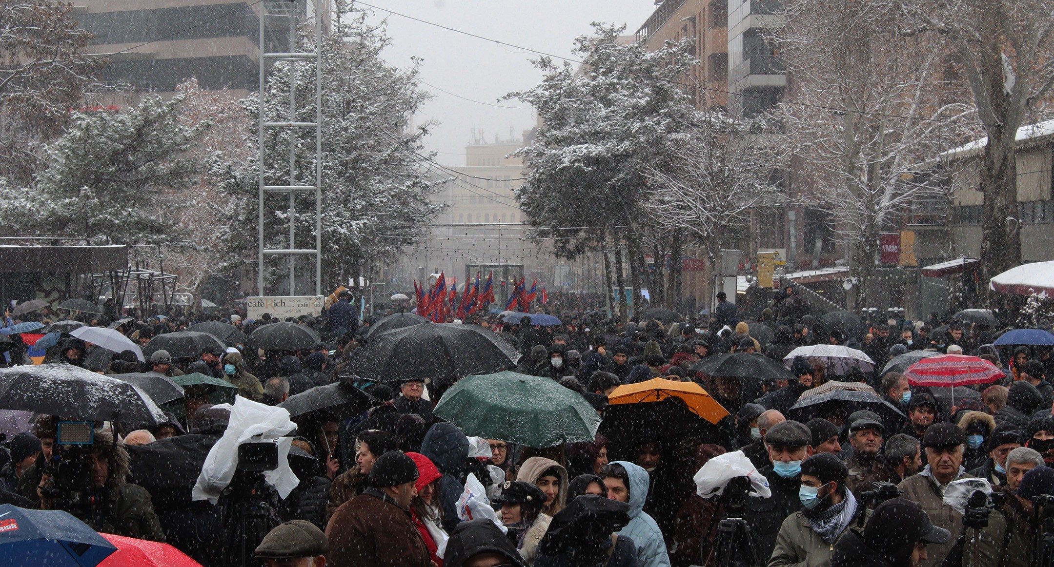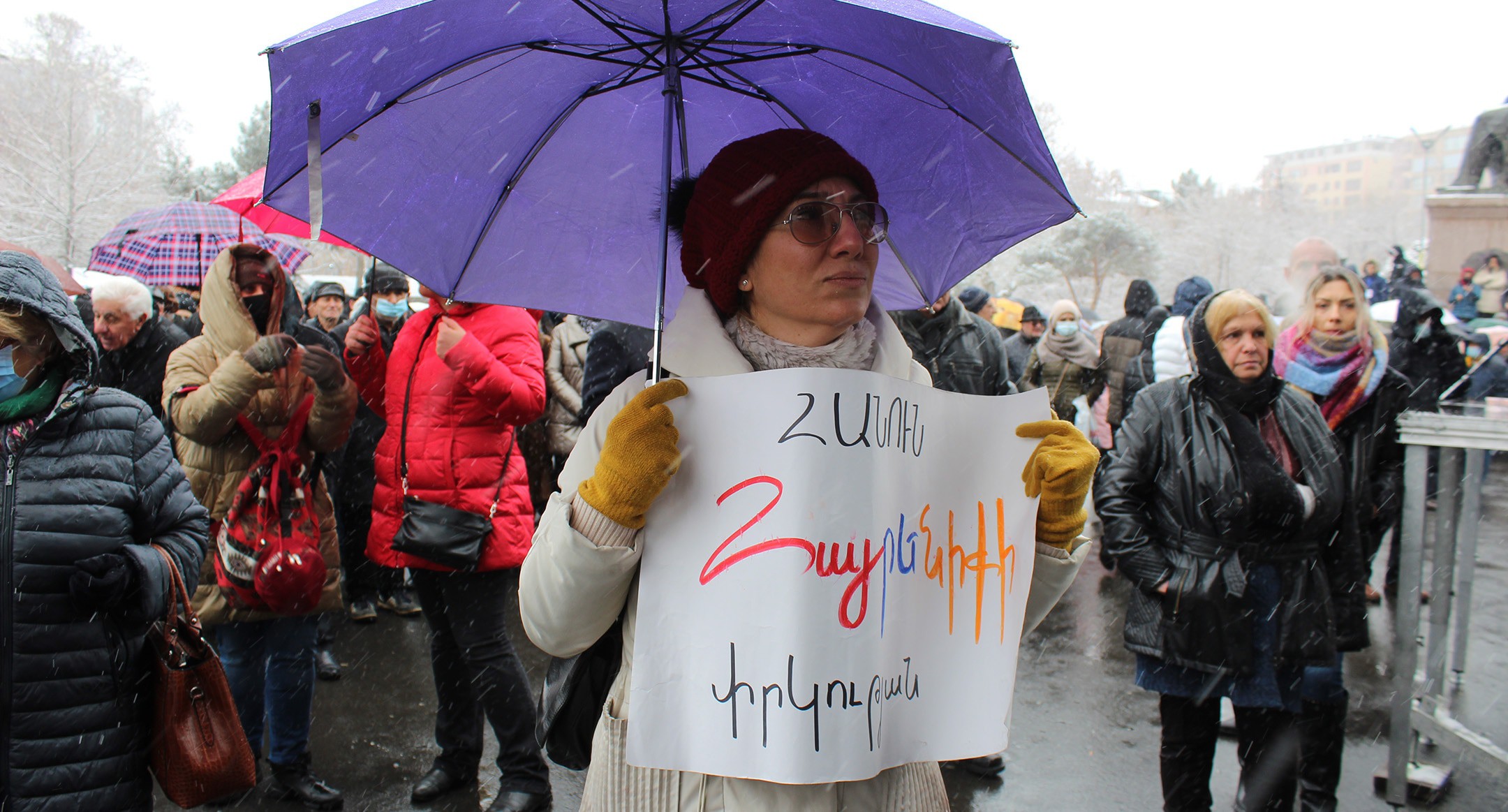 20 февраля в Ереване состоялся митинг оппозиции, приуроченный к 33-летию Карабахского движения. Противники Пашиняна требовали его отставки, скандируя: “Армения без Никола”. Митинг собрал, по оценкам организаторов, несколько десятков тысяч человек. Принять участие в мероприятии приехали жители разных регионов Армении. Участники митинга заявляли о своем несогласии с действиями нынешних властей. Особенно они подчеркнули свое несогласие с трехсторонним заявлением от 9 ноября по Карабаху. При этом митингующие признали, что отказ от этого заявления будет означать вновь войну. Оппозиция призвала граждан присоединиться к требованиям об отставке премьера Никола Пашиняна и заявила о начале ежедневных акций неповиновения. Фоторепортаж из Еревана корреспондента “Кавказского узла” Армине Мартиросян.