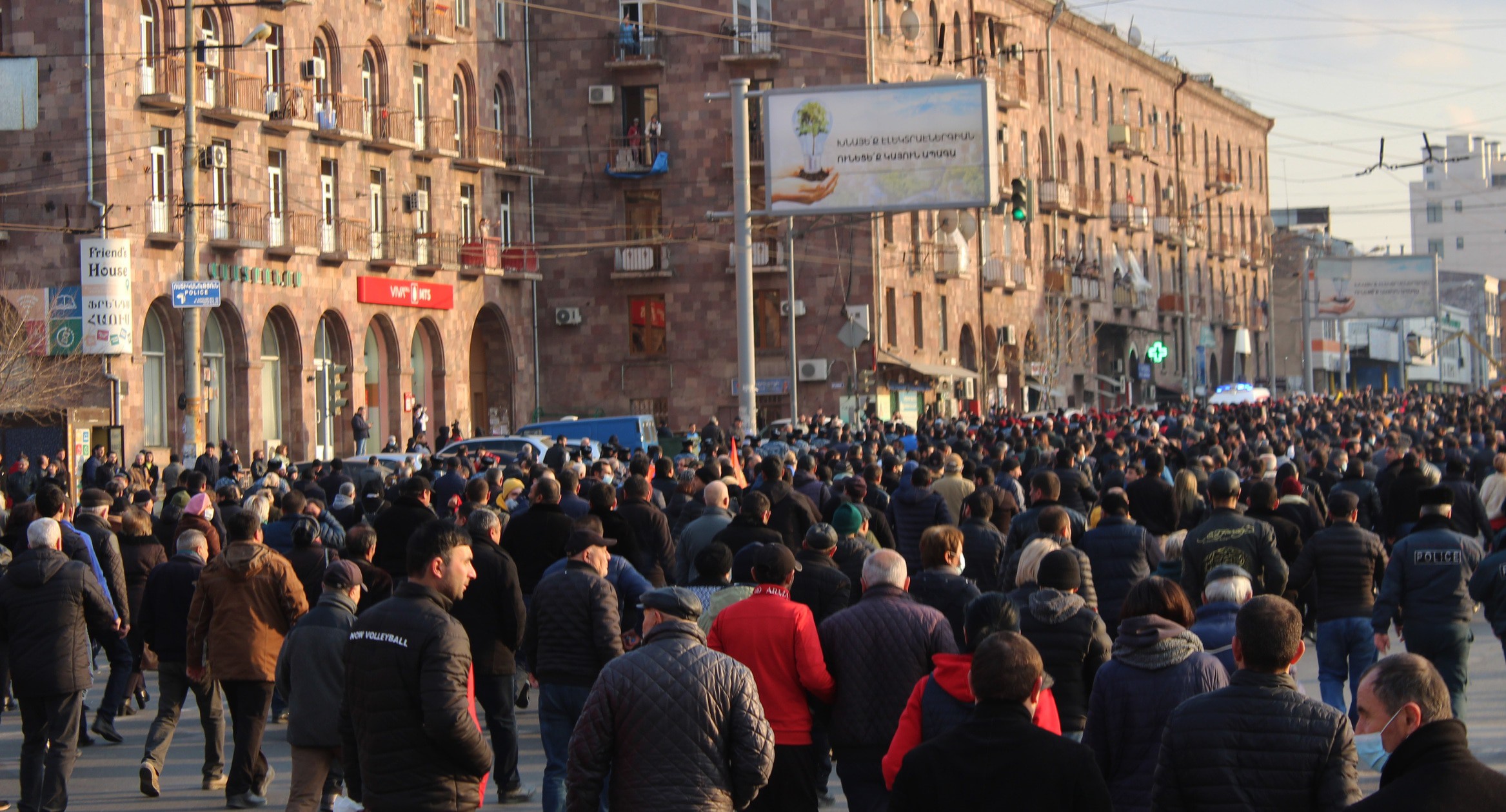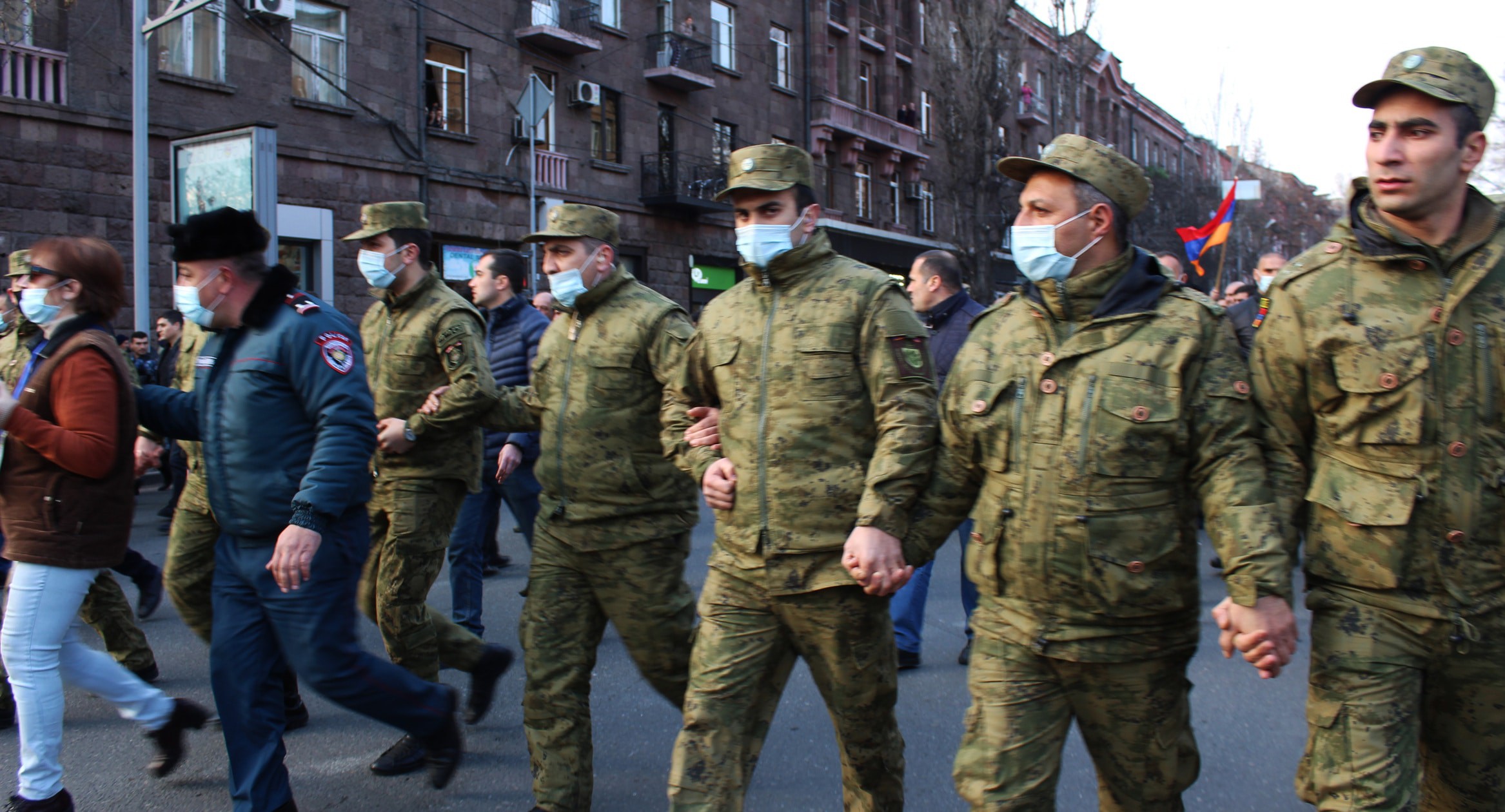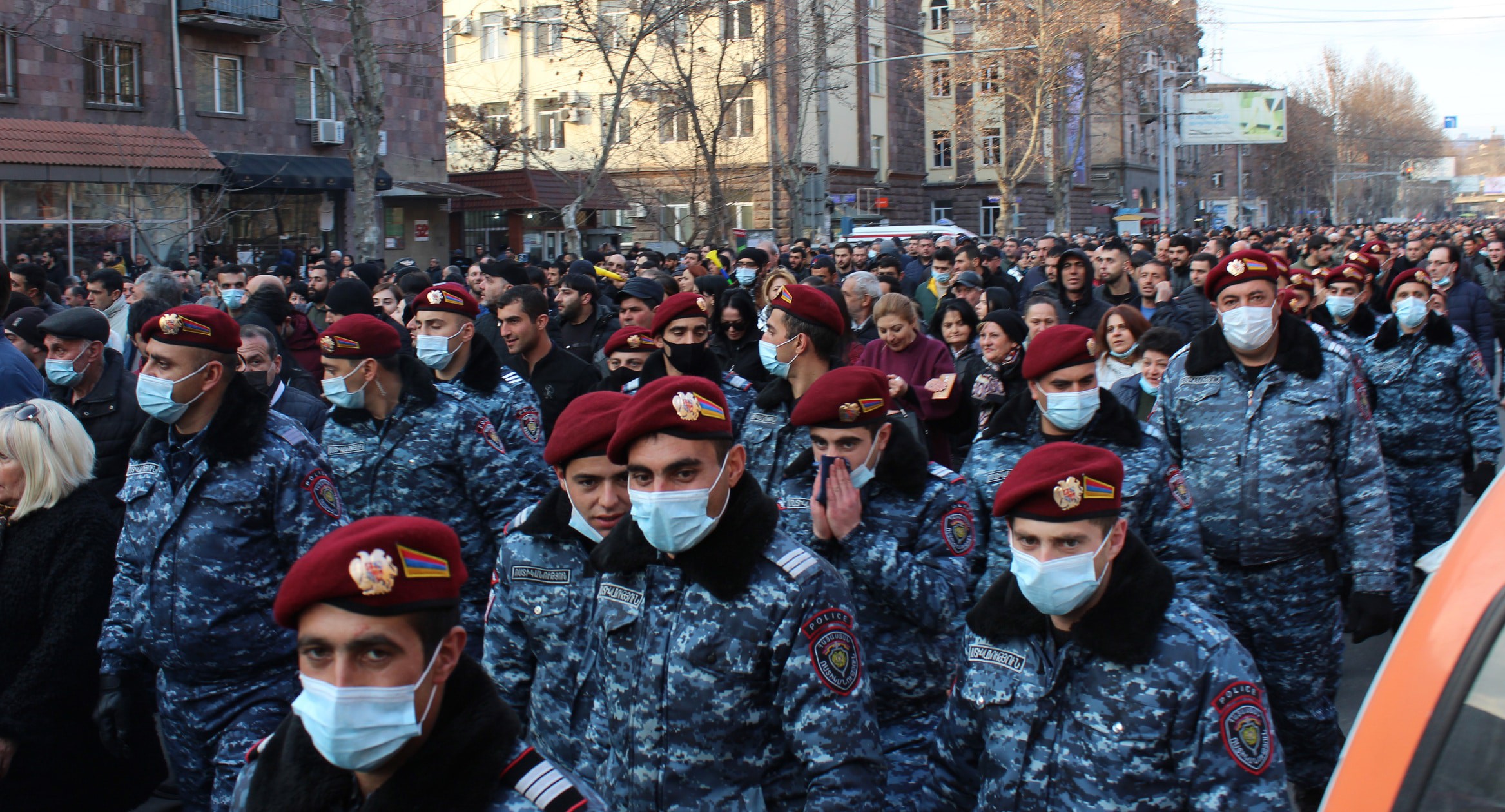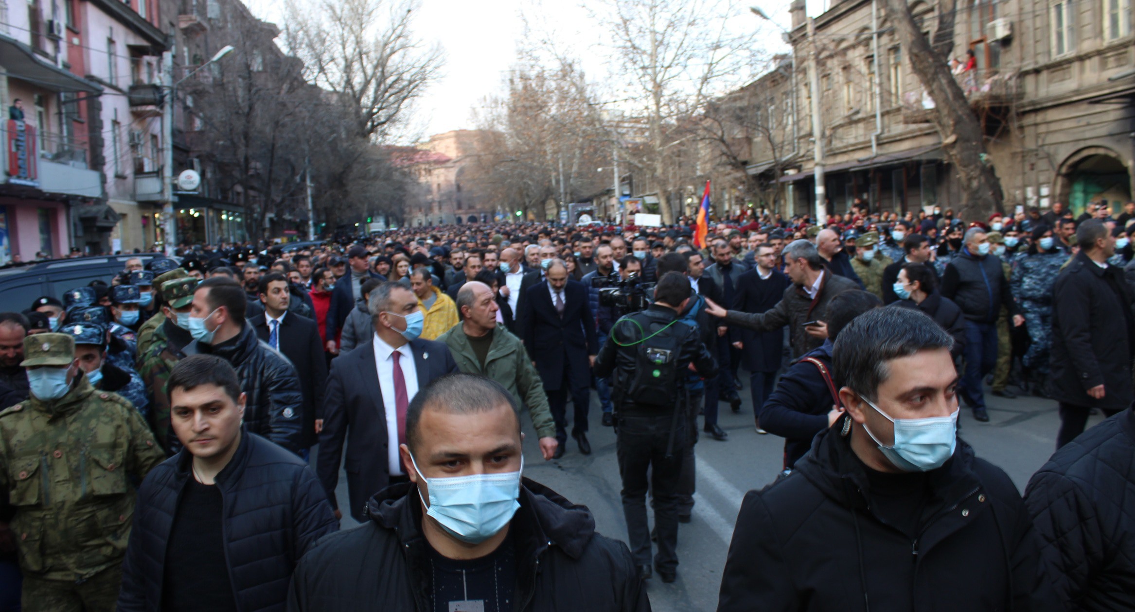 Генштаб Армении призвал Никола Пашиняна подать в отставку. В ответ Никол Пашинян созвал своих сторонников на митинг. По оценке полиции, поддержать премьера на площадь Республики пришли 11-12 тысяч человек. Премьер обвинил Генштаб в попытке военного переворота. При этом Пашинян расценил акции протеста оппозиции как попытку реванша прежних властей. Оппозиция, в свою очередь, также вывела своих сторонников на улицы, забаррикадировав парламент на проспекте Баграмяна. Сторонники оппозиции разбили палатки, заявив, что останутся здесь на ночь. Фоторепортаж корреспондента “Кавказского узла” Тиграна Петросяна.