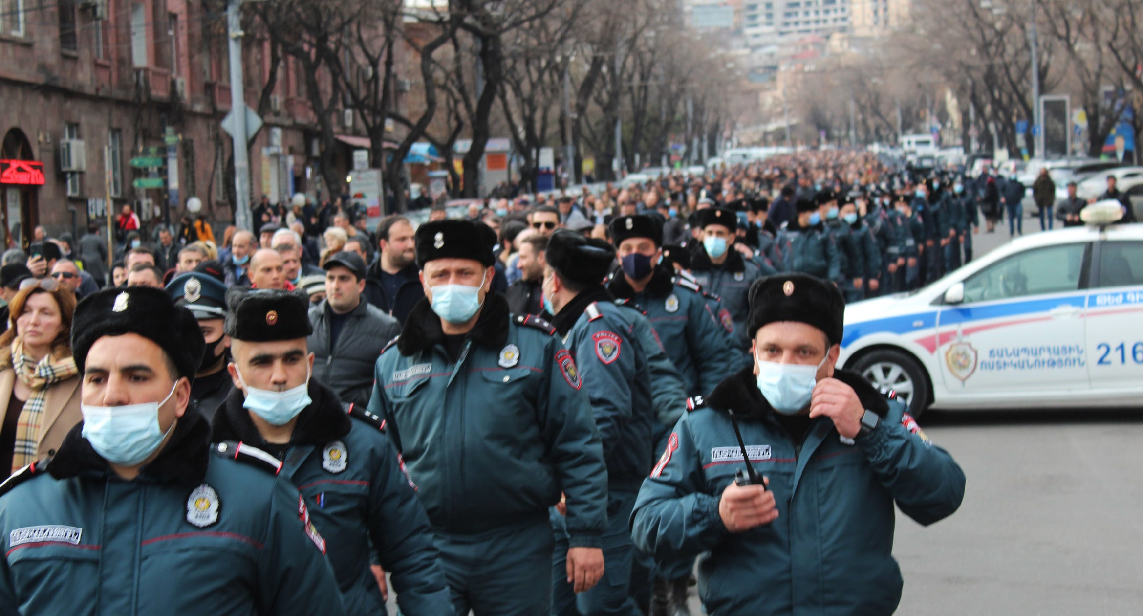 10 марта армянская оппозиция организовала очередной митинг с требованием отставки Никола Пашиняна и его правительства. Обстановка на улице Демирчяна, где накануне противники премьера заблокировали служебный вход в парламент, была спокойной, там дежурили многочисленные полицейские. После митинга противники премьера прошлись шествием по центральным улицам Еревана. Акция оппозиции, которую сопровождали несколько сотен силовиков, завершилась без инцидентов. Фоторепортаж корреспондента “Кавказского узла” Тиграна Петросяна.