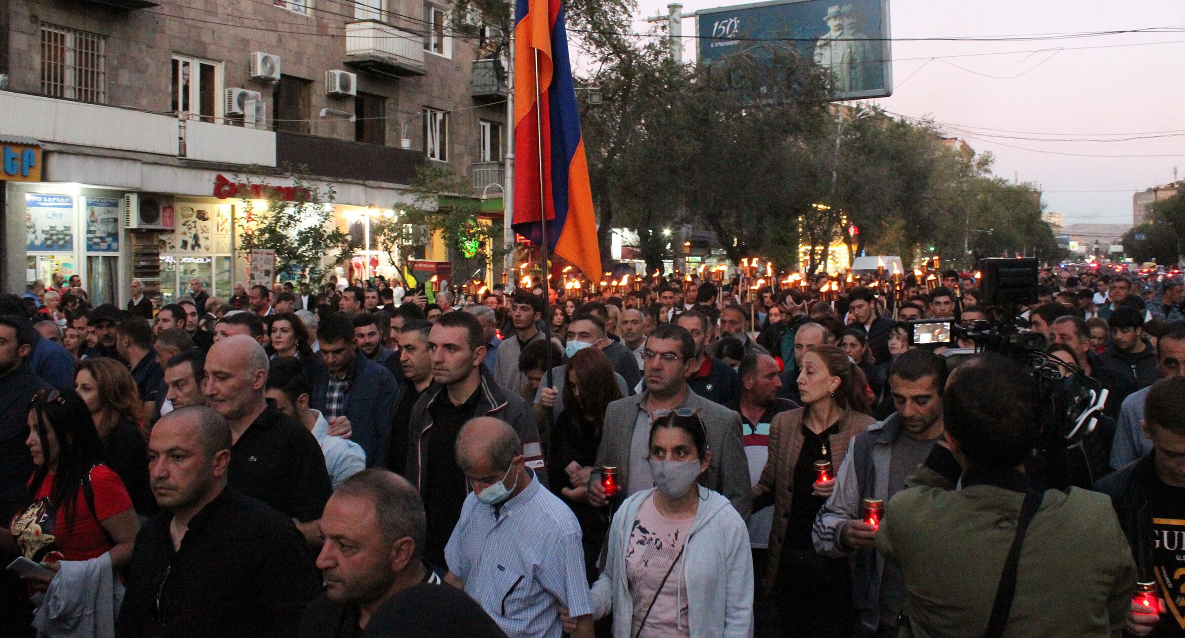 Вечером 26 сентября в Ереване состоялось факельное шествие памяти жертв осенней войны 2020 года. Акцию организовал оппозиционный блок «Армения». «Покажем врагу, что армяне не сдались», – заявили организаторы в анонсе мероприятия. Участники акции прошли с факелами и лампадами к воинскому пантеону «Ераблур», где похоронены участники войны в Карабахе. В ходе шествия из динамиков звучали имена погибших в 44-дневной войне. В шествии, по данным полиции, приняли участие около 1500 человек, однако организаторы заявили о более чем 3000 участниках. Фоторепортаж корреспондента “Кавказского узла” Тиграна Петросяна