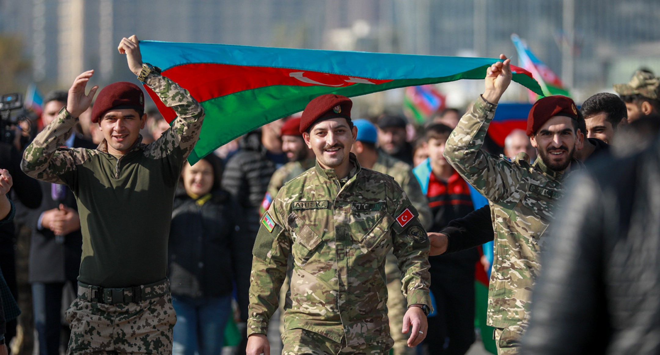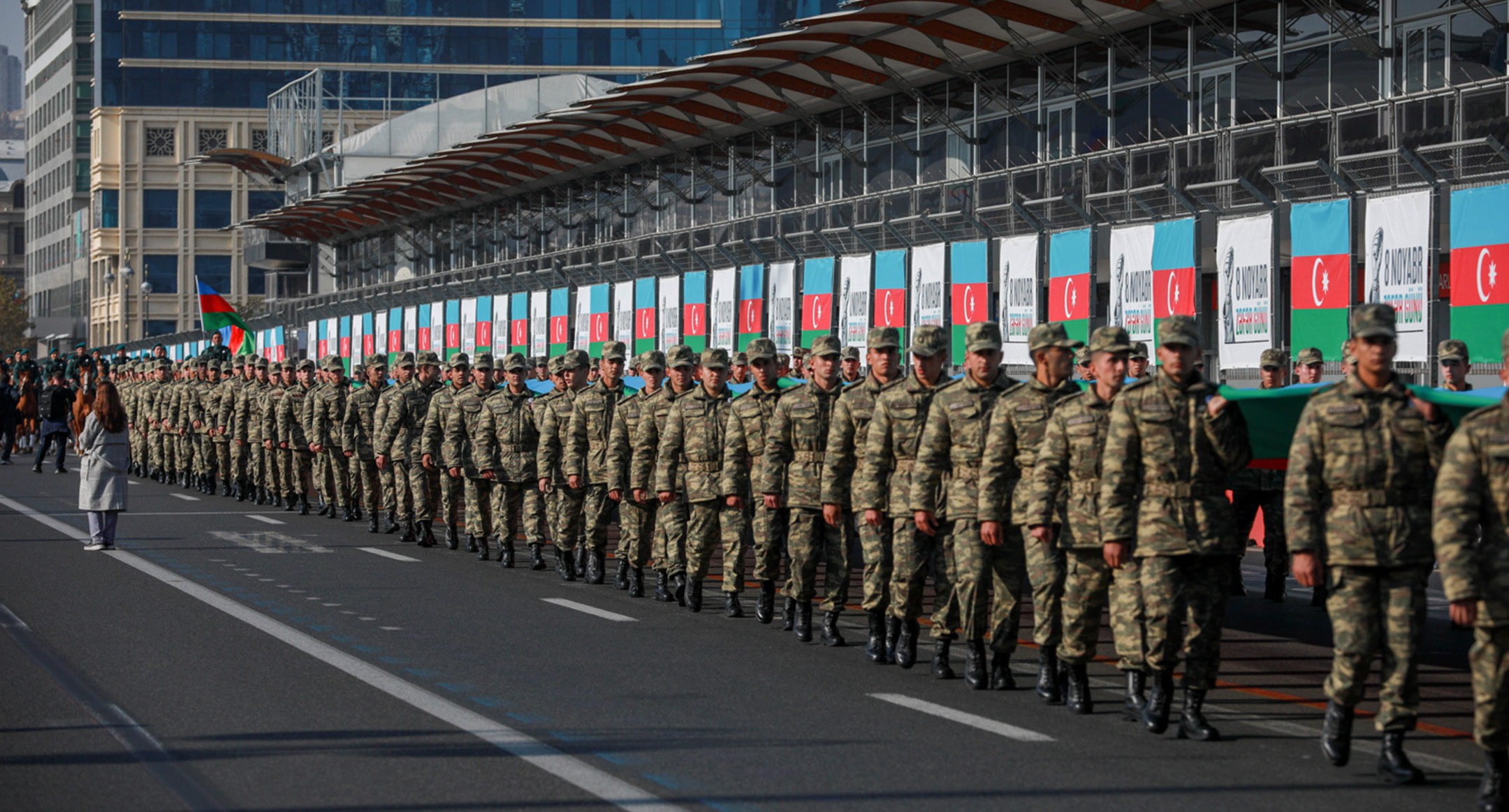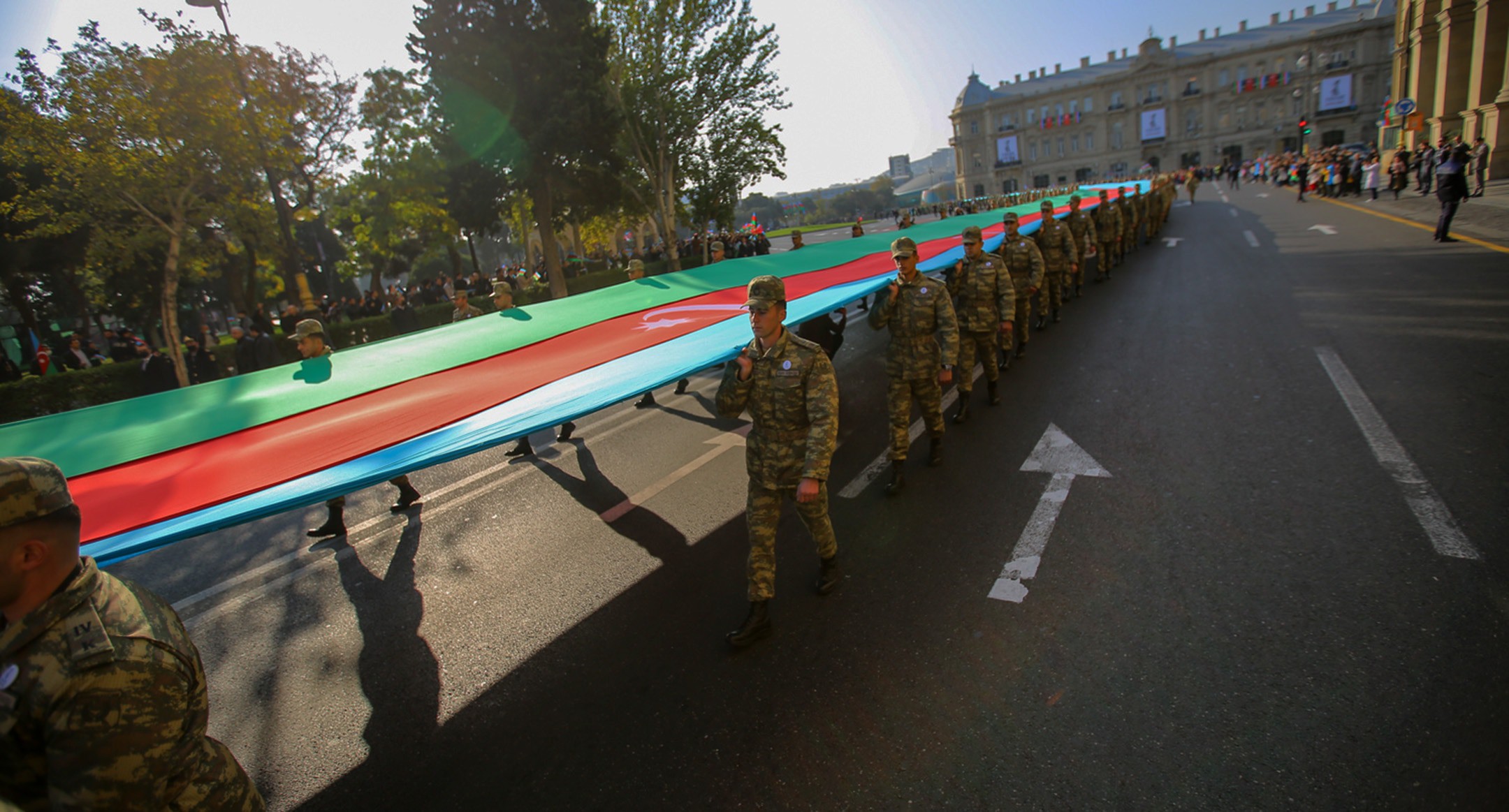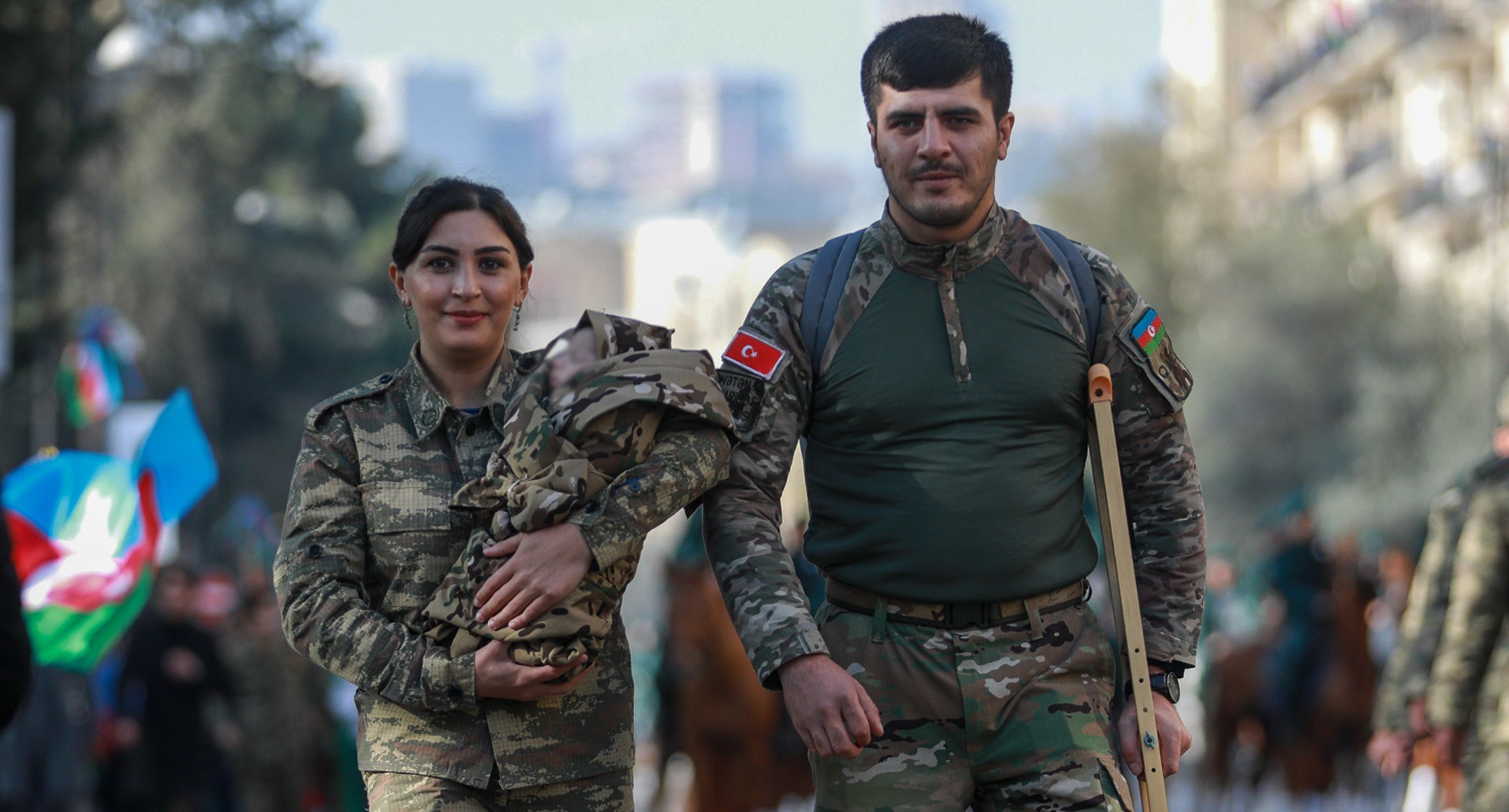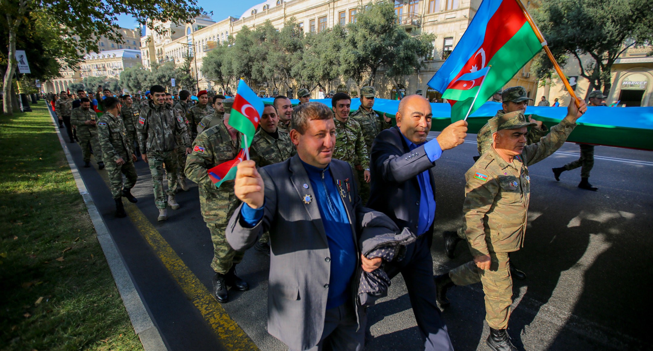 Шествие в честь Дня победы Азербайджана в 44-дневной осенней войне 2020 года состоялось в Баку. Военная кампания, в ходе которой погибли более 2900 азербайджанских военных, завершилась 9 ноября, но праздник отмечается 8 ноября – в день, когда Азербайджан взял под контроль Шушу. Для семей погибших жителей Армении, Нагорного Карабаха и Азербайджана это траурный день.