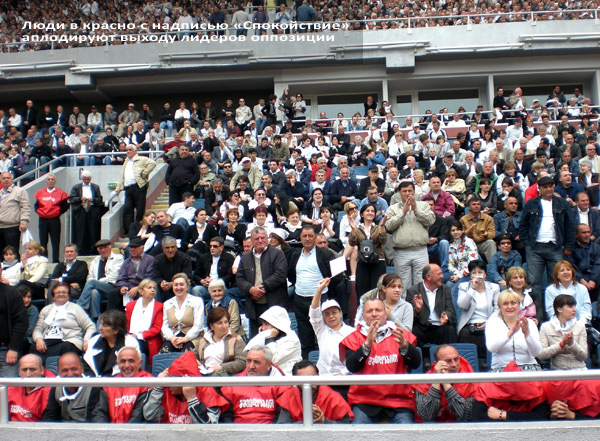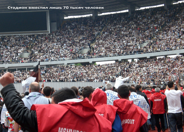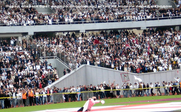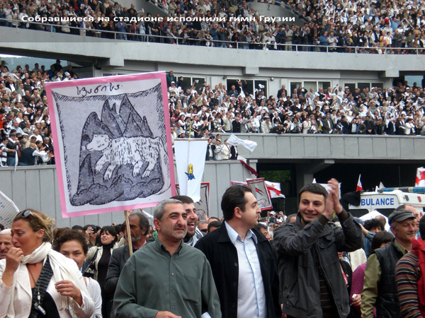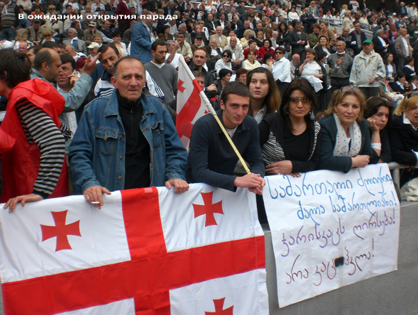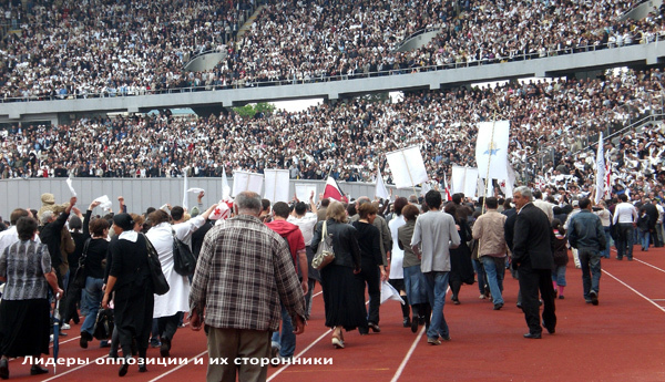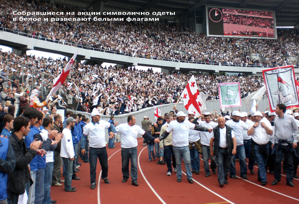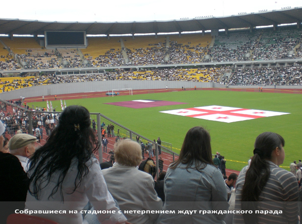В Тбилиси более ста тысяч человек собрались на организованный оппозицией “гражданский парад”, до отказа заполнив стадион имени Бориса Паичадзе. Съемка 2009 г.