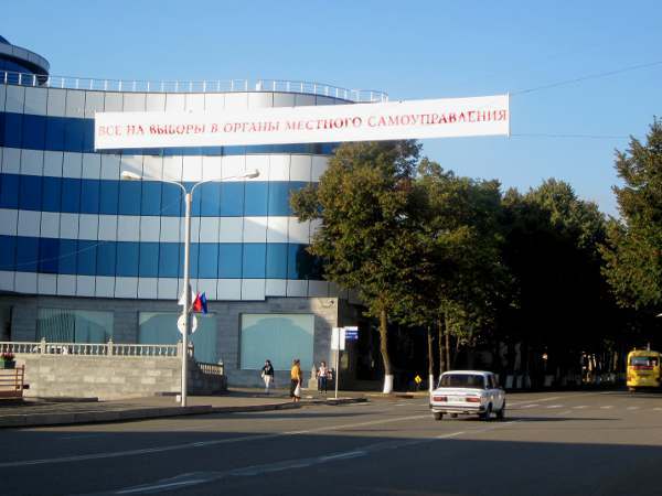 По всему Степанакерту вывешены лозунги с призывом участвовать на выборах в МОС. Нагорный Карабах, Степанакерт, 17.09.2011.