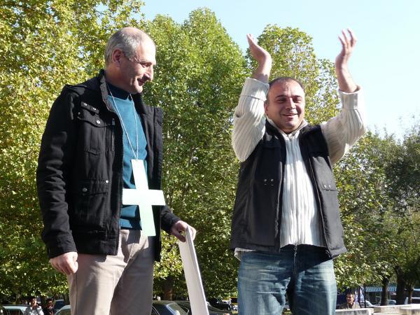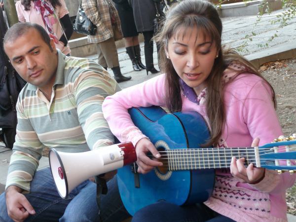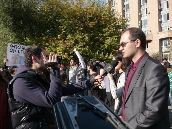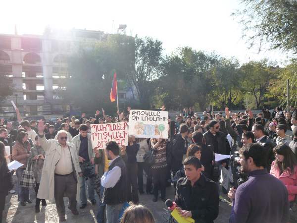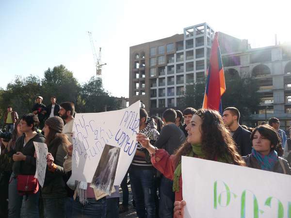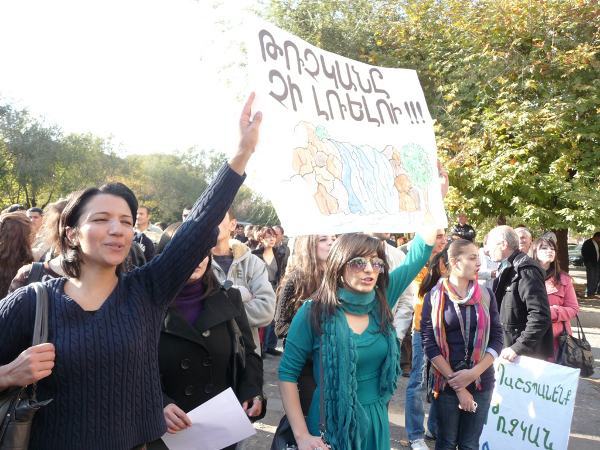 Акция протеста в защиту водопада Трчкан у здания Министерства охраны природы. Ереван, 1 ноября 2011 г. Фото корреспондента "Кавказского узла" Армине Мартиросян