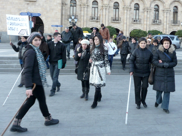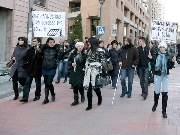 Шествие под девизом “Видеть не трудно, нужно лишь смотреть”, приуроченная к Международному дню слепых, прошла в столице Армении 13 ноября. Акция в первую очередь призывает к внимательности водителей.