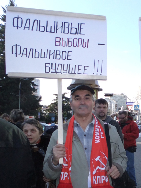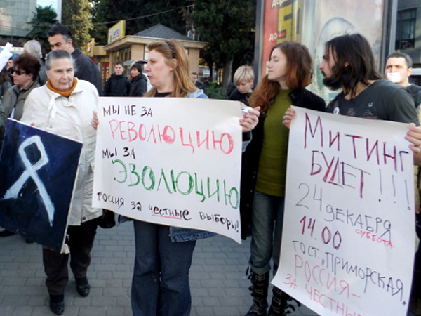 Сегодня в Сочи на площади перед входом в Центральный рынок на улице Московской прошел санкционированный пикет, направленный против фальсификации итогов выборов в Госдуму РФ.