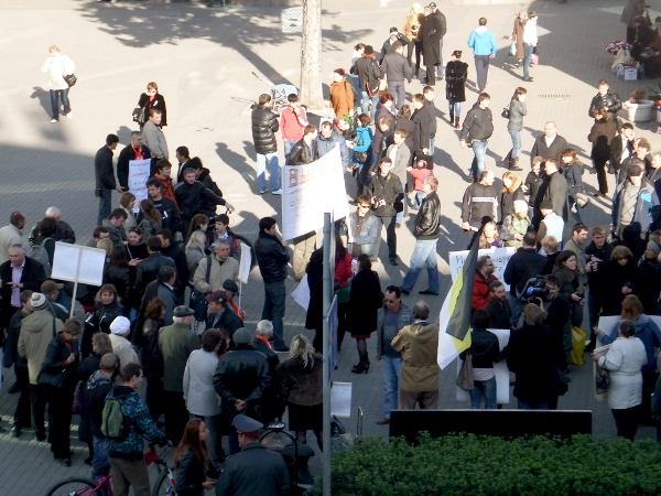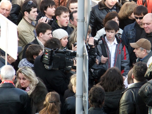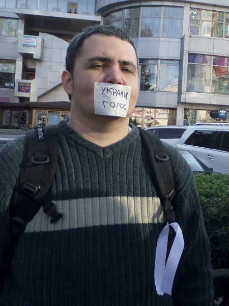 На акцию собралось более ста человек, на груди у них были прикреплены белые ленточки, а у некоторых был заклеен рот наклейкой с надписью «украли голос». Пикетчики держали плакаты, выражающие протест против нечестных выборов и “кражи голосов избирателей”.