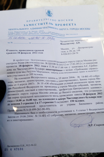 Акция протеста была организована националистами и санкционирована властями, ее участники требовали вынести обвинительный приговор чемпиону мира по смешанным единоборствам Расулу Мирзаеву, обвиняемому в убийстве 19-летнего москвича Ивана Агафонова.