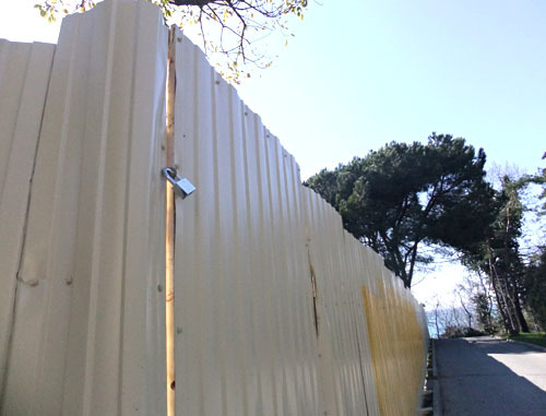 Строительные заборы на Приморской набережной в парковой зоне возле Зимнего театра и гостиницы «Приморская». Сочи, 21 марта 2012 г. Фотокорреспондент «Кавказского узла» Светлана Кравченко