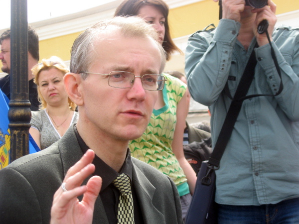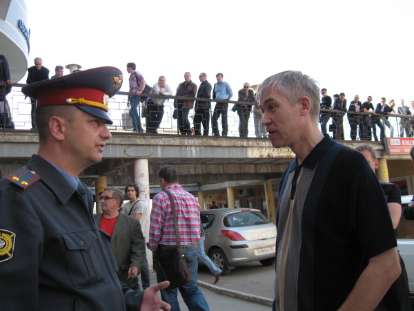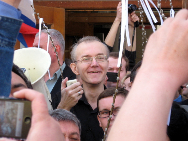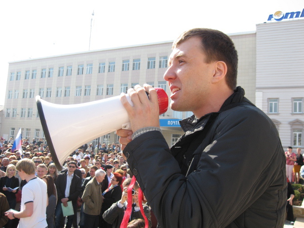 10 апреля, 10.20. Олег Шеин выступает перед сторонниками на стихийном митинге.