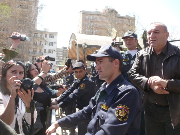 Активисты инициативной группы “Бригада” 15 апреля вновь попытались начать демонтаж ларьков на территории парка Маштоца. “Мы призываем городские власти прекратить бессмысленные, незаконные действия в парке. Мы будем стоять здесь и использовать разные методы воздействия до тех пор, пока наши чиновники не отзовут свое решение и не вернут общественную территорию общественности”, – заявил активист “Бригады” Андреас Гукасян.