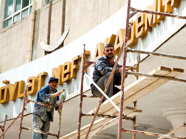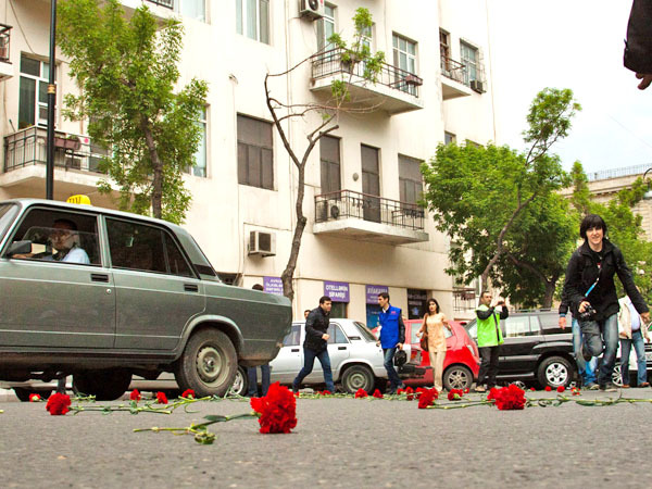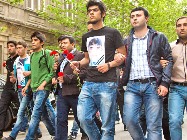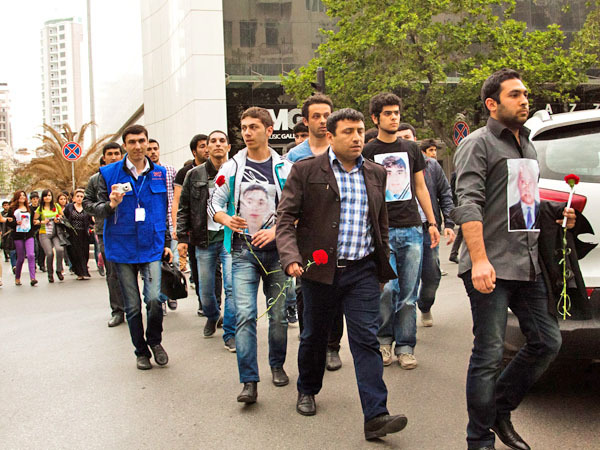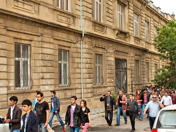 Молодые люди идут шествием от кинотеатра "Низами" к АГНА