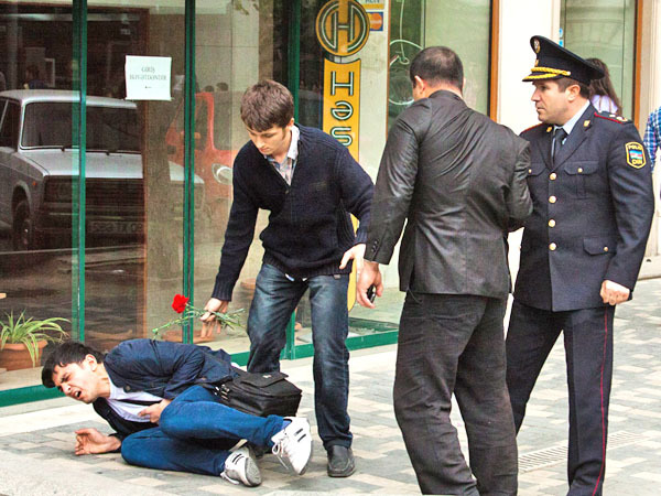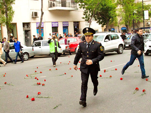 В Баку полиция пресекла акцию поминовения перед зданием Нефтяной академии. Баку, 30 апреля 2012 г. Фоторепортаж корреспондента "Кавказского узла" Азиза Каримова