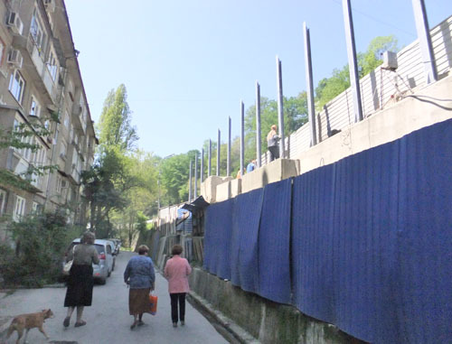 Жильцы дома №2 по улице 20-й Горнострелковой дивизии на сходе заявили о нарушении своих прав на безопасное жилье со стороны строителей дороги. Сочи, 14 мая 2012 г. Фоторепортаж корреспондента "Кавказского узла" Светланы Кравченко