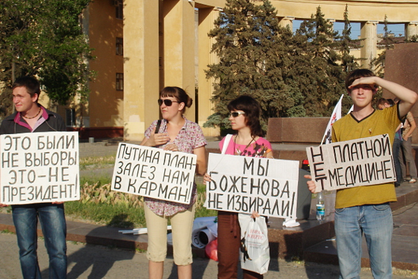 На прошедшем 12 мая в Волгограде митинге его участники заявили, что их цель – установление законной власти в Волгограде, области и всей стране. Организатором митинга выступило региональное отделение партии “Яблоко”. Кроме “Яблока”, в нем приняли участие представители КПРФ, общественного движения “За честные выборы”.