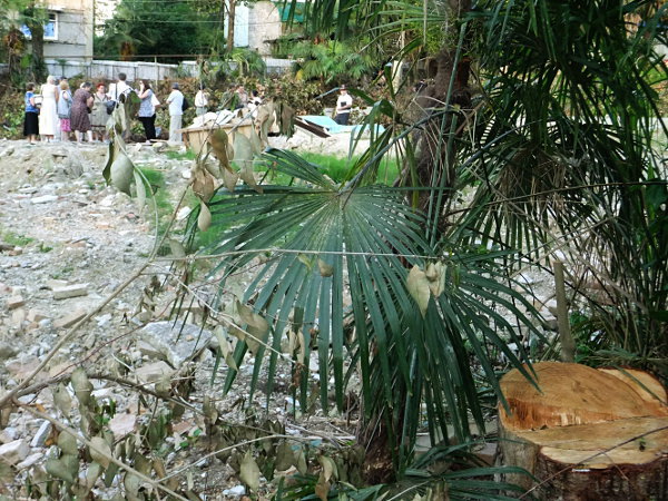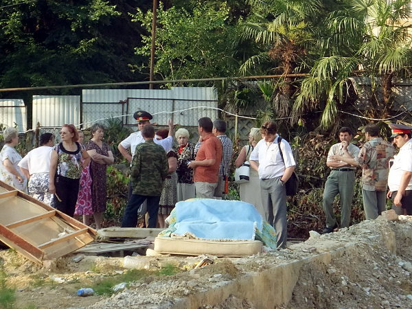 Вечером 5 июня в Сочи на месте уничтоженного детского сада № 2 “Сказка” и парковой зоны прошел сход граждан по улице Туапсинская, 19. Представители мэрии и компании-застройщика на акцию протеста не приехали. Участники схода приняли резолюцию, которую решено направить мэру Анатолию Пахомову: прекратить уничтожение парковых зон, детских садов и застройку детской территории коммерческим высотками.