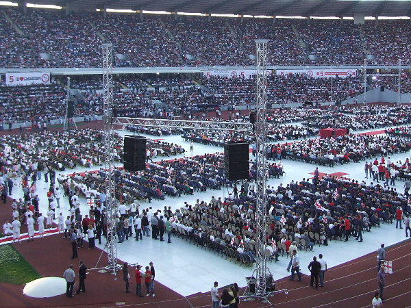 В Тбилиси на стадионе имени Бориса Пайчадзе 28 сентября в рамках кампании по выборам депутатов парламента прошел съезд правящей партии Грузии “Единое национальное движение” (ЕНД).