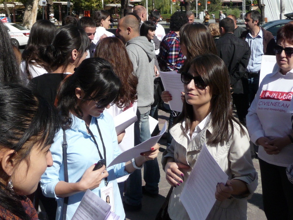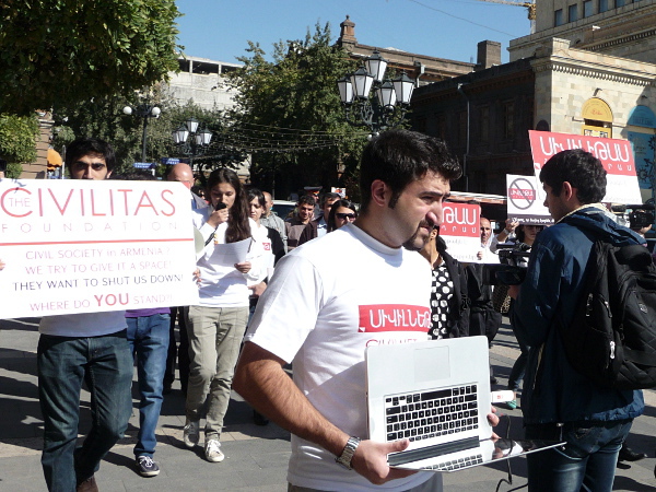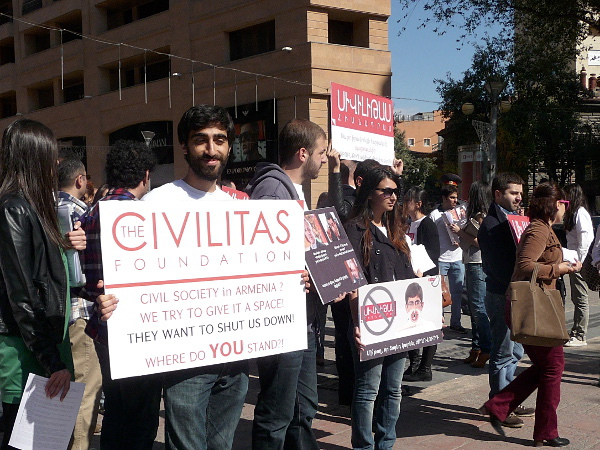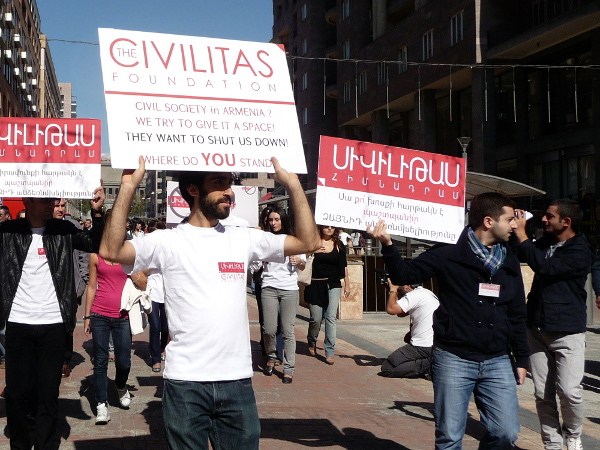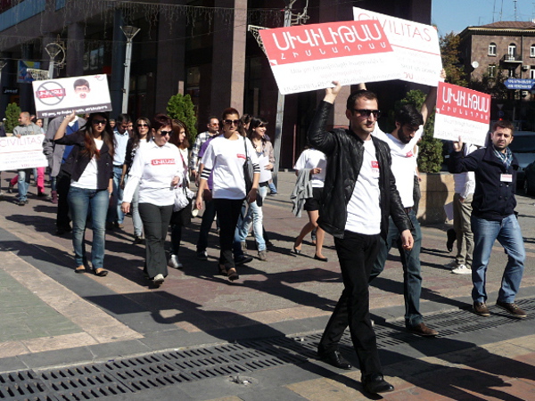 19 октября в Ереване состоялось шествие сотрудников фонда “Сивилитас” в поддержку его учредителя Вардана Осканяна. Около 30 участников акции прошли от офиса “Сивилитас” до Генеральной прокуратуры и передали письмо с требованием прекратить давление как на фонд, так и на Вардана Осканяна.