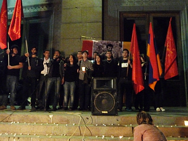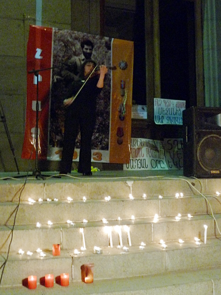 В Ереване на площади Свободы состоялась церемония зажжения свечей, организованная инициативной группой “Вставай, Армения!” и АРФ “Дашнакцутюн”, в память об убитом главе села Прошян Котайкской области Грачье Мурадяне.