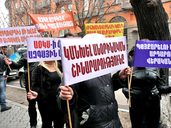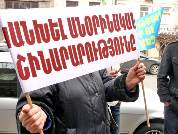 Акция протеста в связи со строительством близ здания Армянского общества культурных связей (АОКС) гостиничного комплекса. Тбилиси, 11 февраля 2013 г. Фоторепортаж корреспондента "Кавказского узла" Армине Мартиросян
