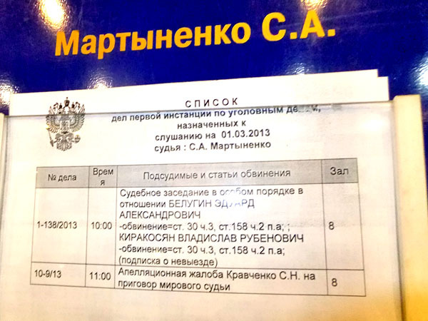 Рассмотрение апелляционной жалобы по делу журналистки Светланы Кравченко на приговор по делу о нанесении побоев охраннику ЧОП "Регион-3" Владимиру Кривошееву. Сочи, 1 марта 2013 г. Фоторепортаж корреспондента «Кавказского узла» Светланы Кравченко