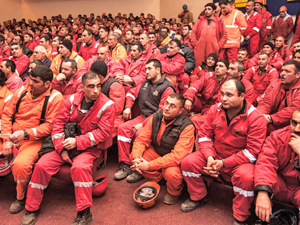 Встреча бастующих работников азербайджанского предприятия Bos Shelf с руководством компании. Баку, 17 марта 2013 г. Фоторепортаж Азиза Каримова для "Кавказского узла"