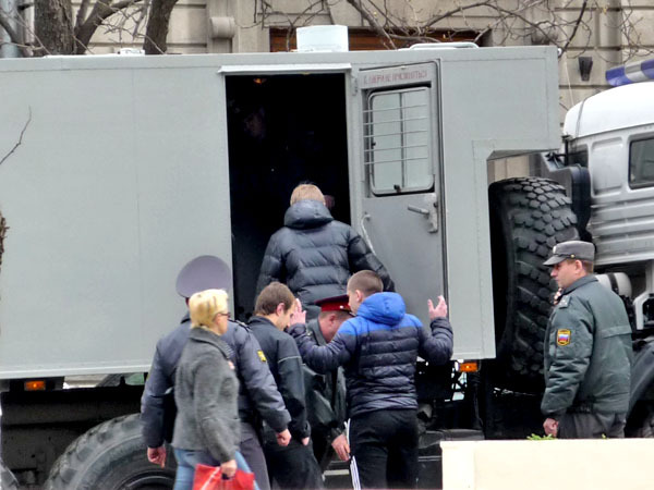 Четыре человека были задержаны сегодня в Ростове-на-Дону в ходе проведения акции "День русского гнева". Ростов-на-Дону, 13 апреля 2013 г. Фоторепортаж корреспондента "Кавказского узла" Олеси Диановой