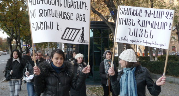 Акция-шествие в Ереване под девизом "Видеть не трудно, нужно лишь смотреть", приуроченная к Международному дню слепых. Фото корреспондента "Кавказского узла" Армине Мартиросян
