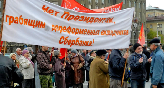 В Красноармейском районе Волгограда прошел митинг протеста против экономической и социальной политики президента и правительства РФ. Волгоград, 18 сентября 2012 года.