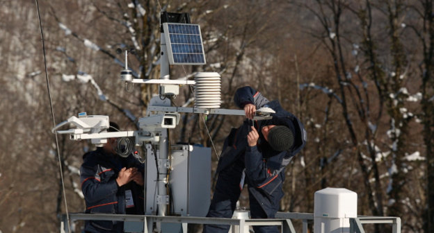 Установка метеорологических комплексов на спортивных объектах Горного олимпийского кластера. Сочи, февраль 2014 г. Фото компании "Мегафон"